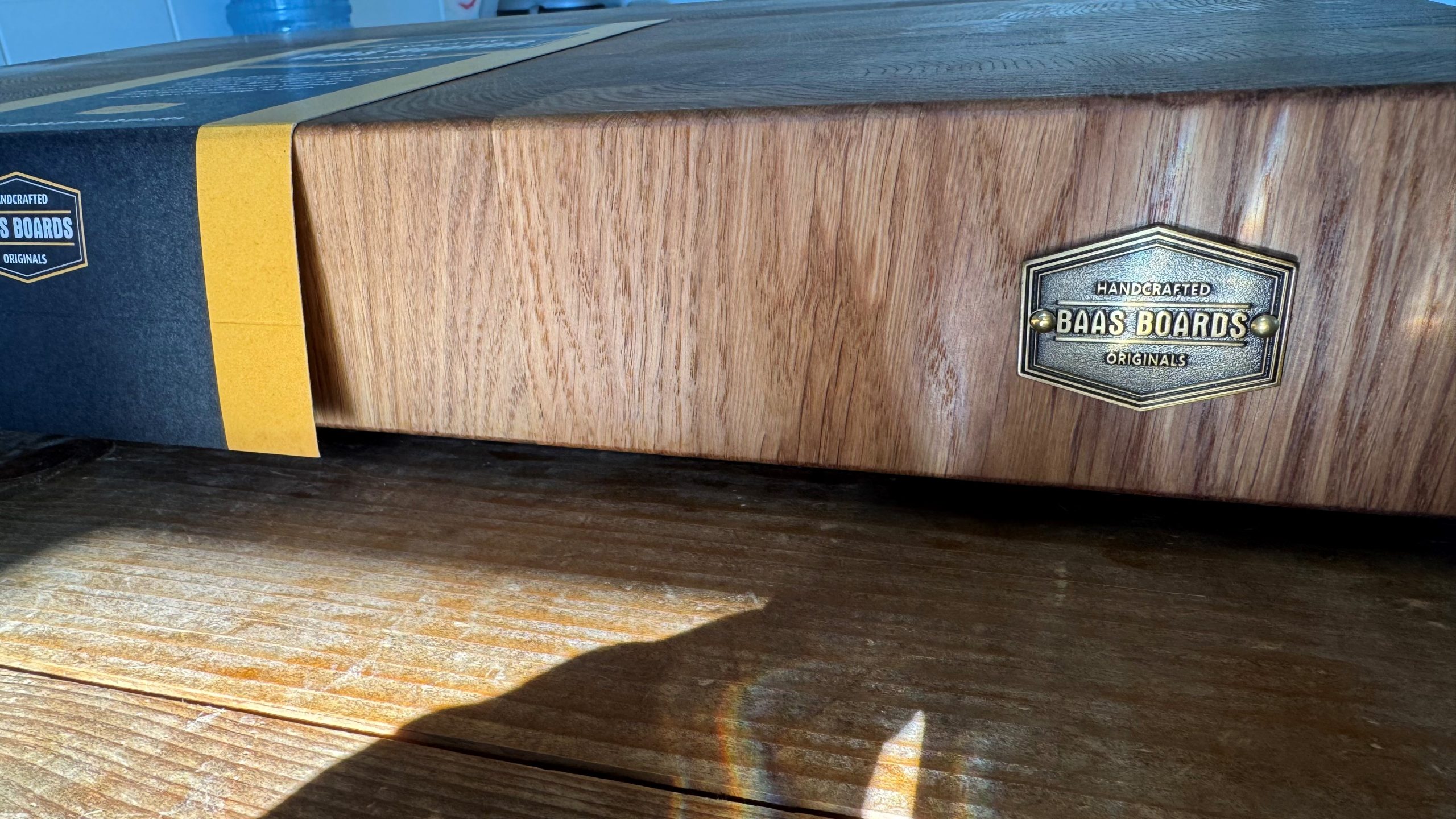 Baas Boards Eiken Butcher Block in de maat 60x40x7cm. Dit handgemaakte massief Eiken Butcher Block is voor professioneel gebruik. Het hout is geschuurd tot korrel 240 en heeft daarna 4 maal! in een oliebad gelegen. Het block is reeds afgewerkt met Baas Boards Was. Het block is voorzien van 4 voetjes.