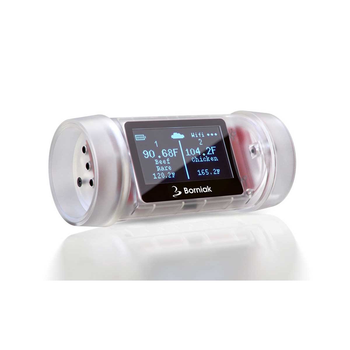 Borniak GrillEye MAX is ’s werelds eerste ultrasnelle en uiterst nauwkeurige slimme thermometer voor grill of smoker. Hij vertelt je precies wanneer je gerechten perfect gaar zijn, waar je ook bent. Met een precisie tot ±0,1 °C / 0,18 °C in slechts 2 seconden geniet je elke keer van perfecte resultaten voor familie en vrienden.